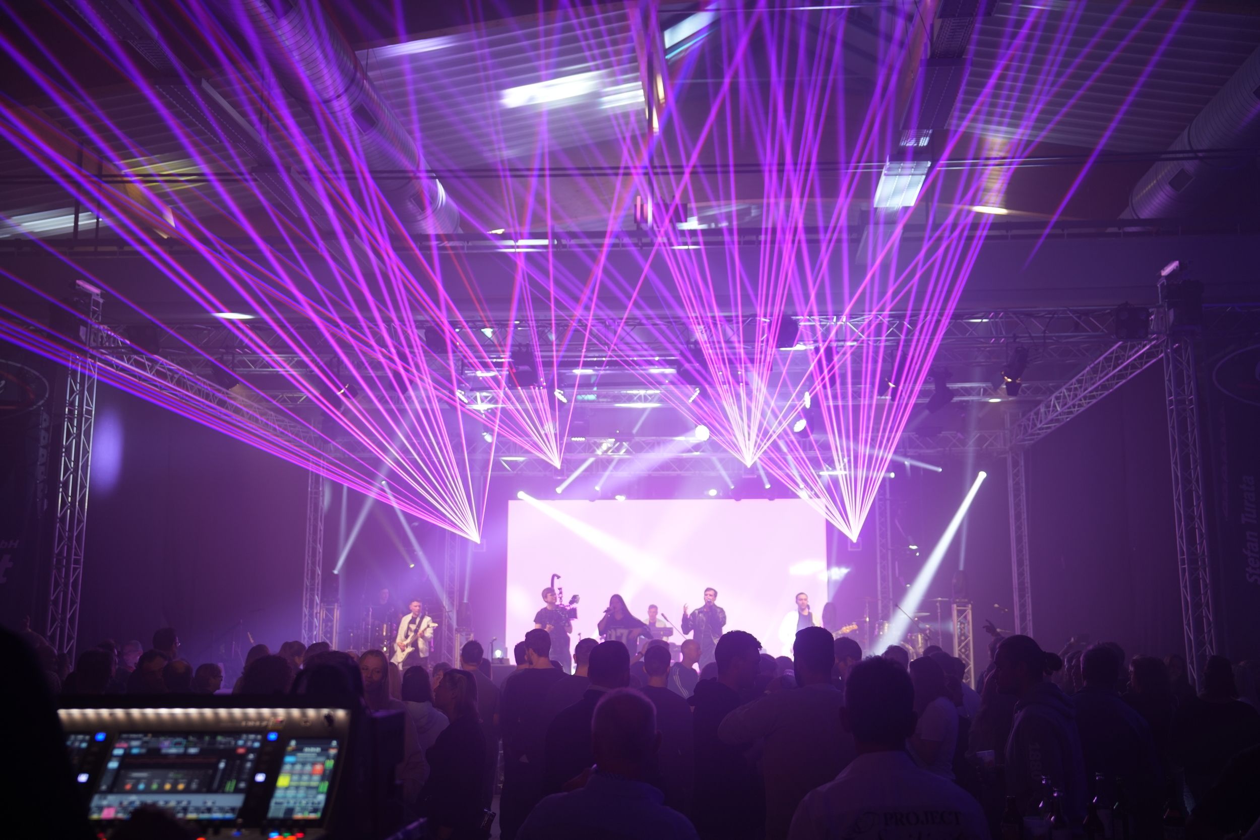 Mit moderner Lichttechnik setzen wir Bühnen, Produkte und Räume wirkungsvoll in Szene. Wir entwickeln individuelle Lichtkonzepte, die Atmosphäre schaffen und Ihre Botschaft gezielt unterstützen.